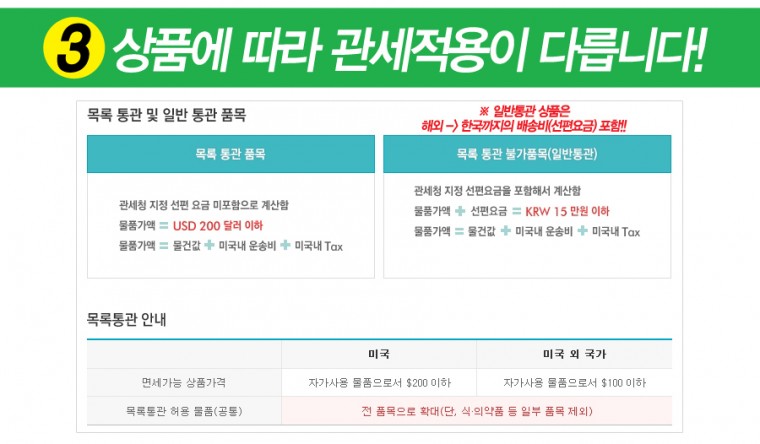 ※ 미국외 지역에서 직구하실때도 목록통관 품목은 동일합니다.