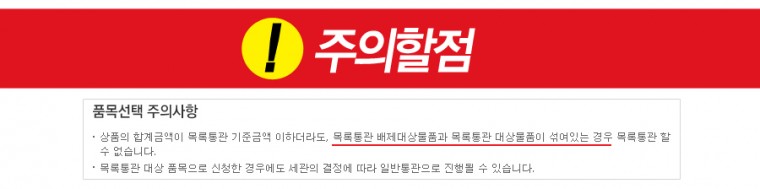 가장 조심하셔야할 부분은 목록통관 + 일반통관 상품을 같이 구입하실경우!!